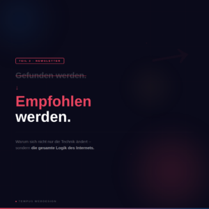 Warum Sichtbarkeit 2026 völlig neu gedacht werden muss – und warum das für Ihr Unternehmen eine echte Chance ist. Liebe Kundinnen und Kunden, wir müssen über etwas reden, das gerade die Spielregeln im Internet verändert. Nicht irgendwann. Jetzt. Und zwar so grundlegend, dass wir bei Tempus Webdesign entschieden haben, Ihnen diesen Newsletter zu schreiben – […]